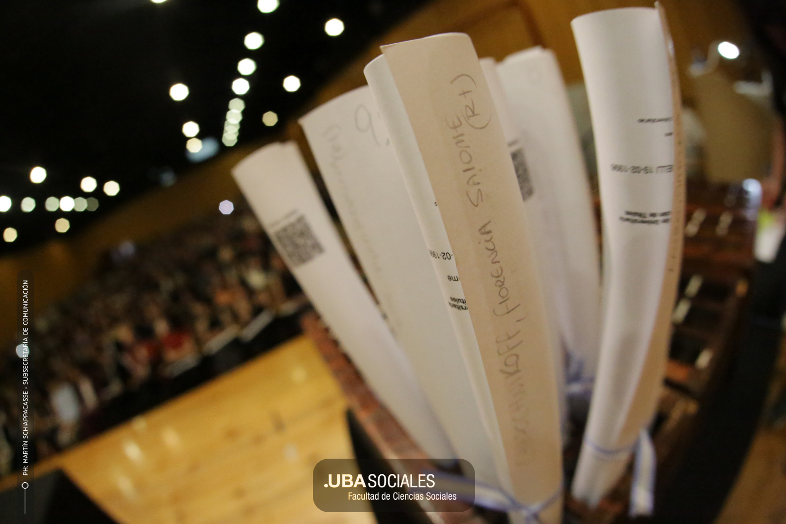 Arias reivindicó entonces el rol de las ciencias sociales. «Los que elegimos las ciencias sociales somos principalmente ambiciosos: creemos que se puede conocer y transformar la sociedad, mejorar y cambiar la vida de los otros», sostuvo, y agregó: «Creemos que la vida no se divide entre gente con suerte y sin suerte. Creemos que hay relaciones sociales que permiten a las personas buscar su suerte».