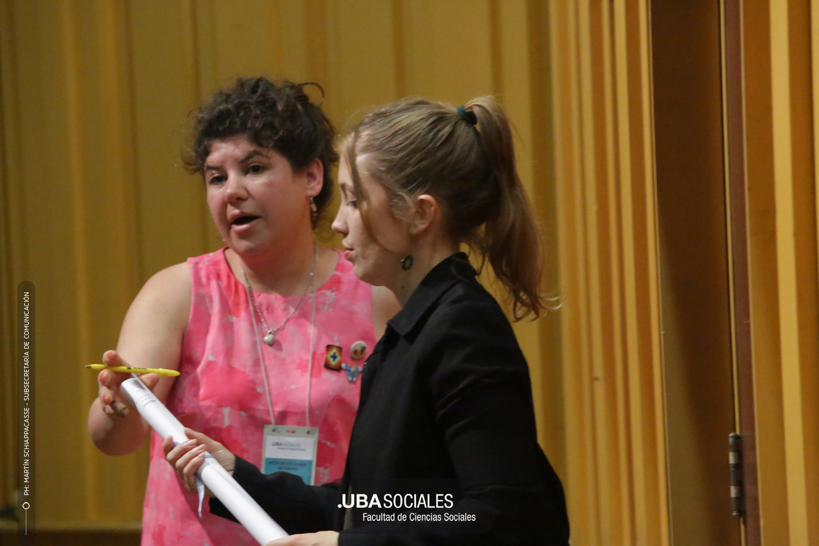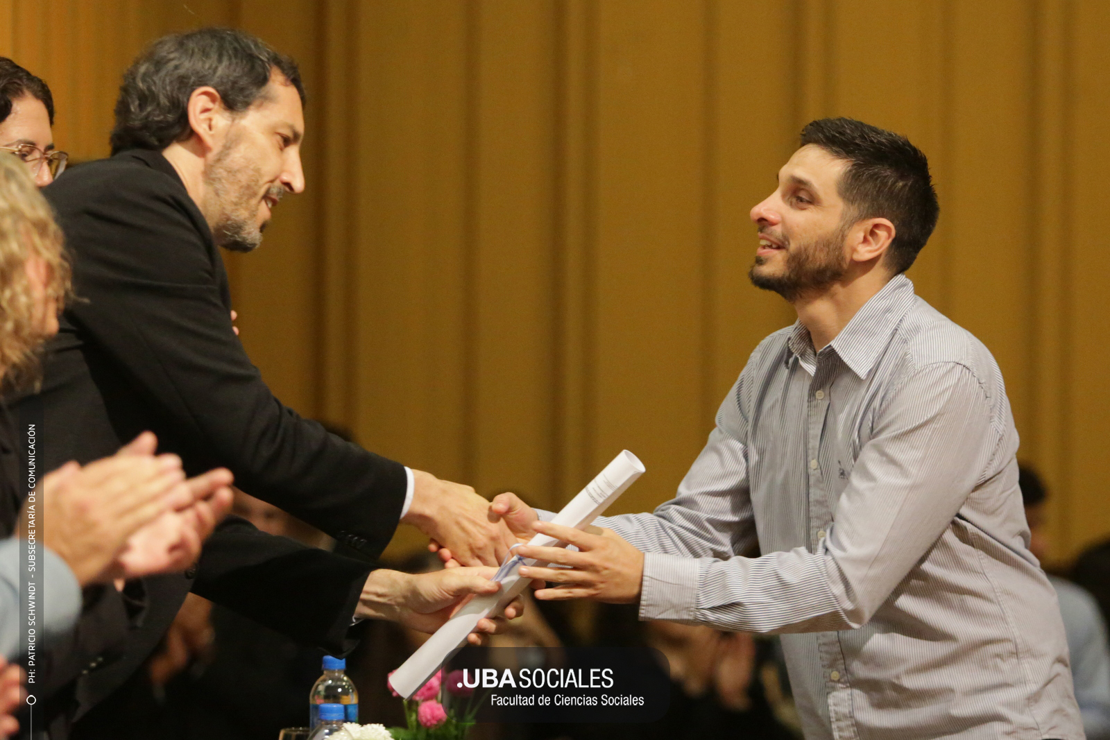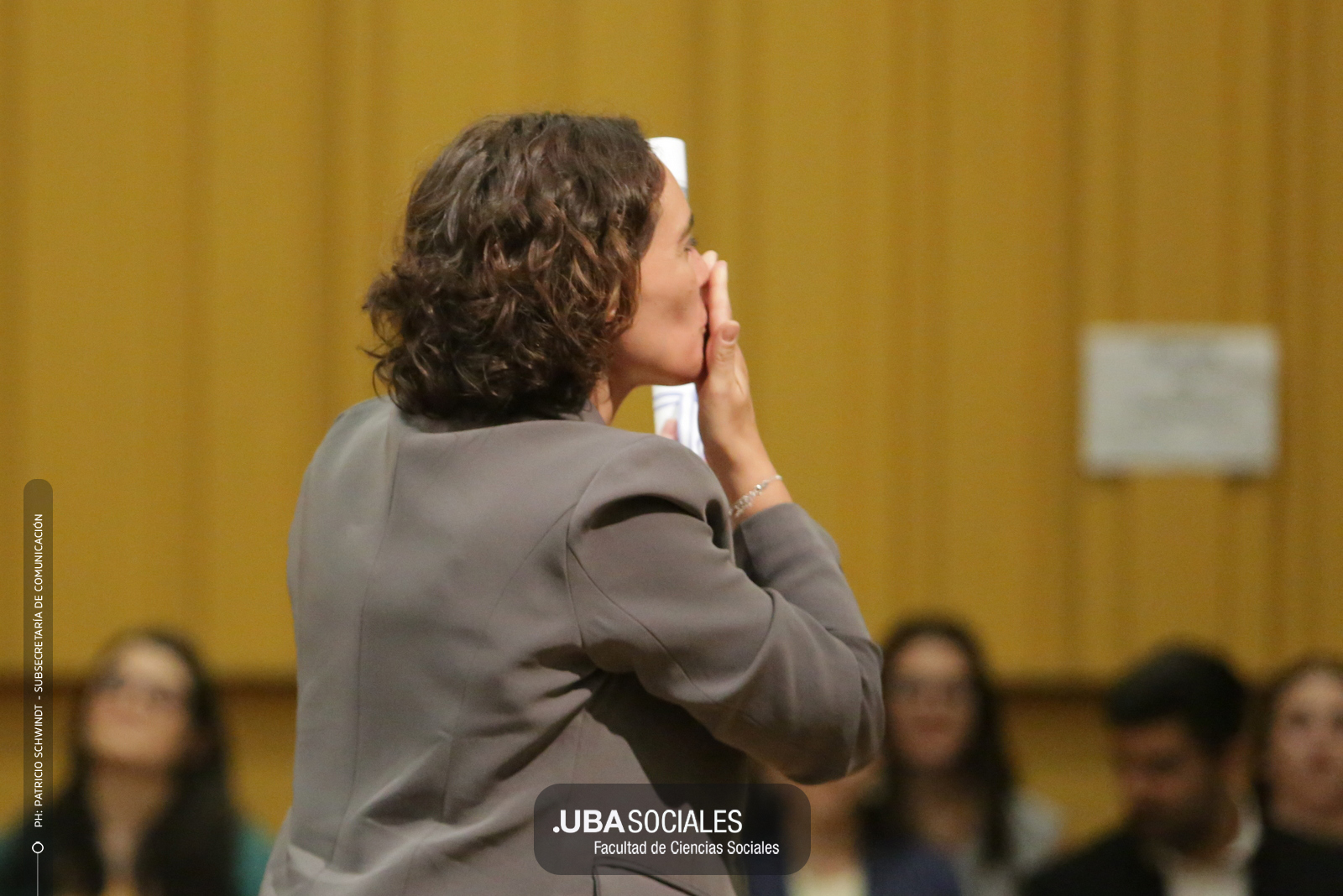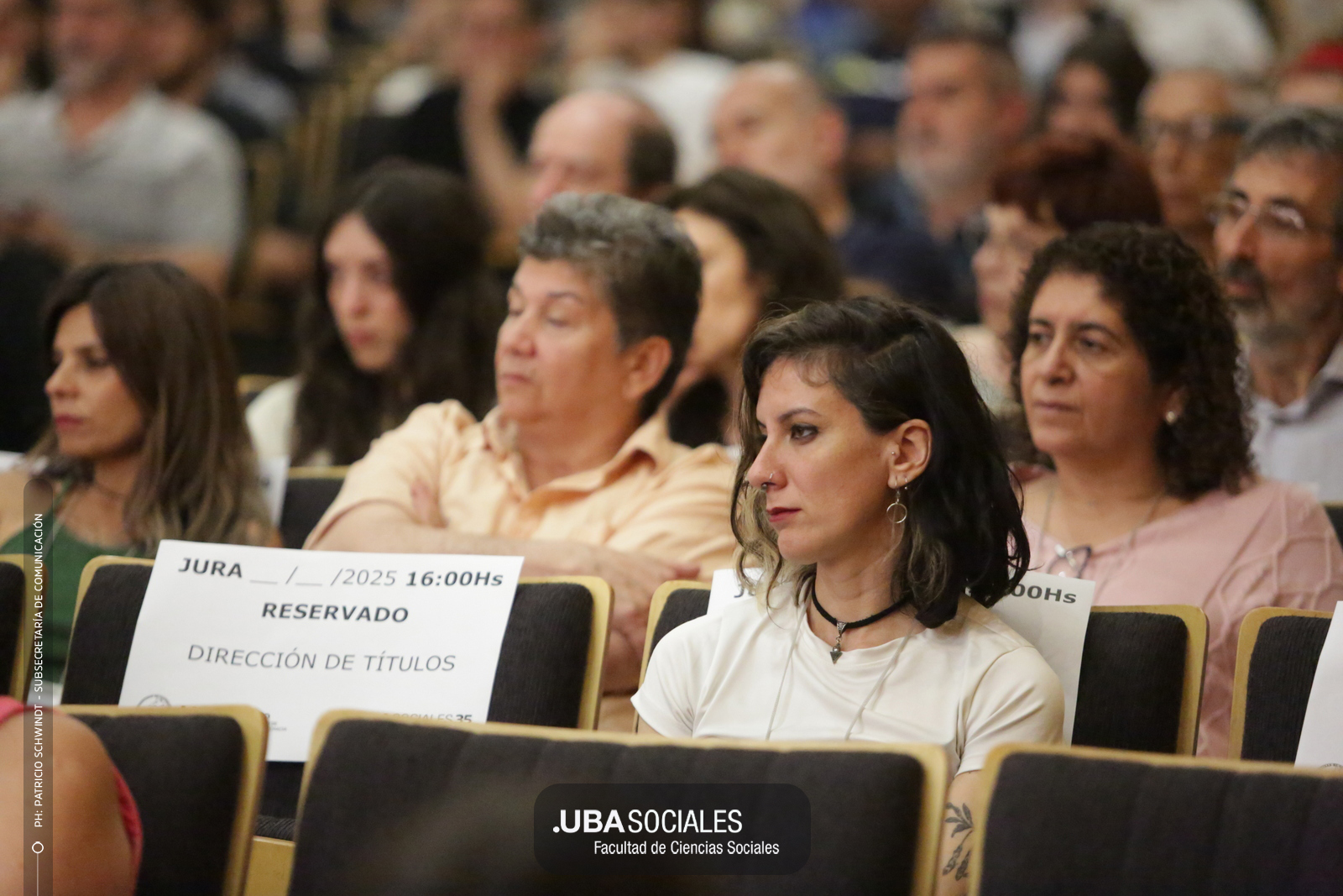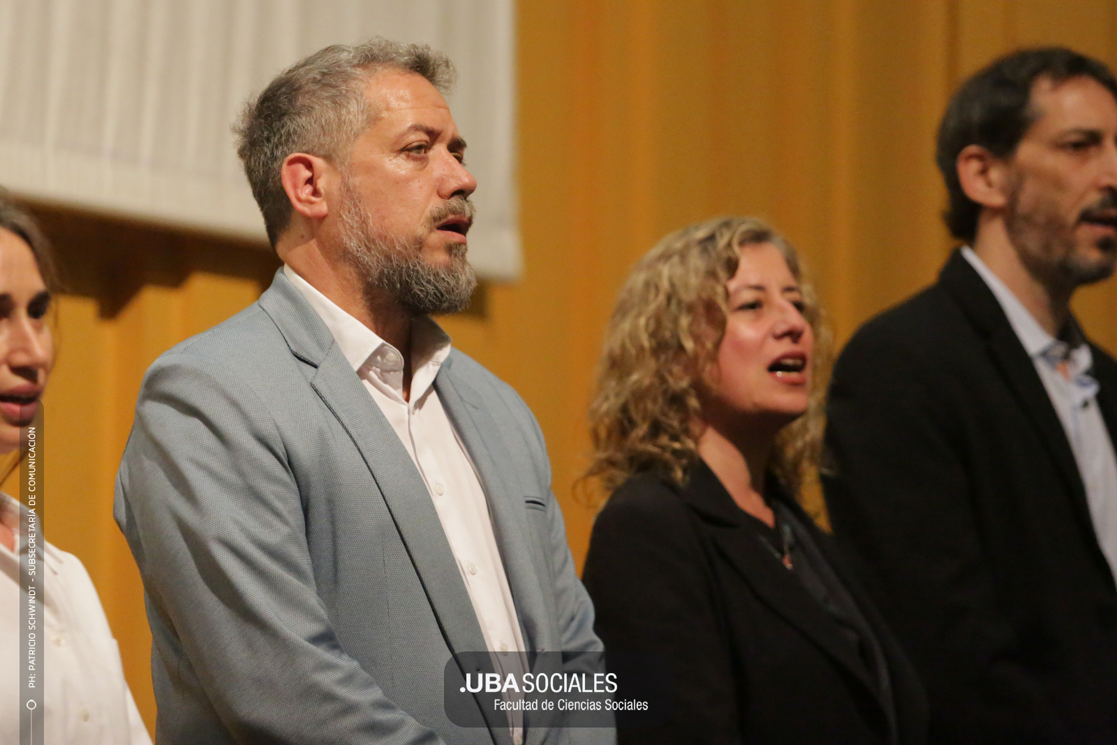 Visiblemente emocionado, explicó que la jura de los flamantes licenciados y licenciadas de una de las cinco disciplinas que se dictan en Sociales se debía al trabajo del área de Títulos pero también al empeño puesto en la reforma del plan de estudios por parte la comunidad académica y el equipo de la carrera de Ciencias de la Comunicación. De Charras expresó, además, «el saludo y las felicitaciones» de la decana Ana Arias y las autoridades de la Facultad.