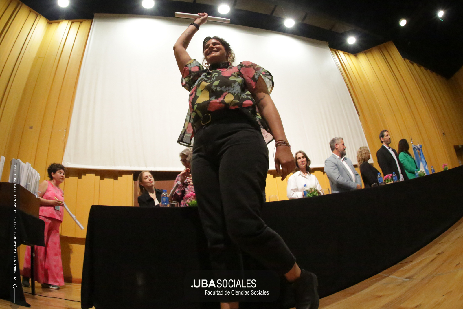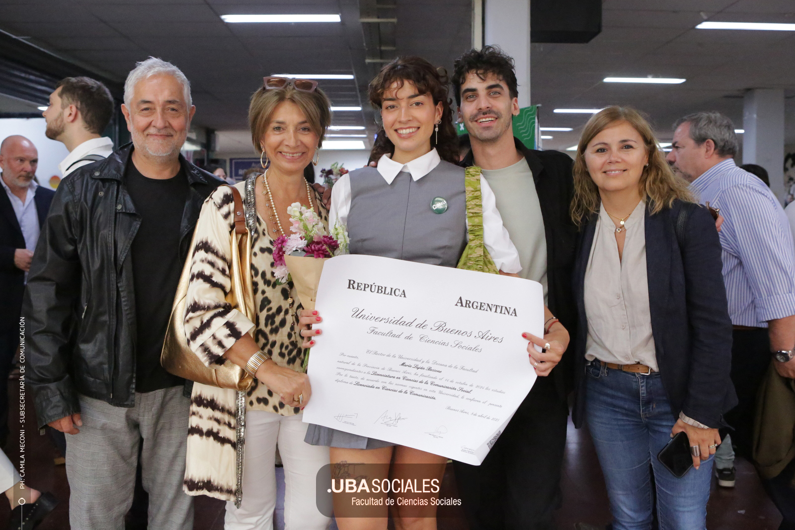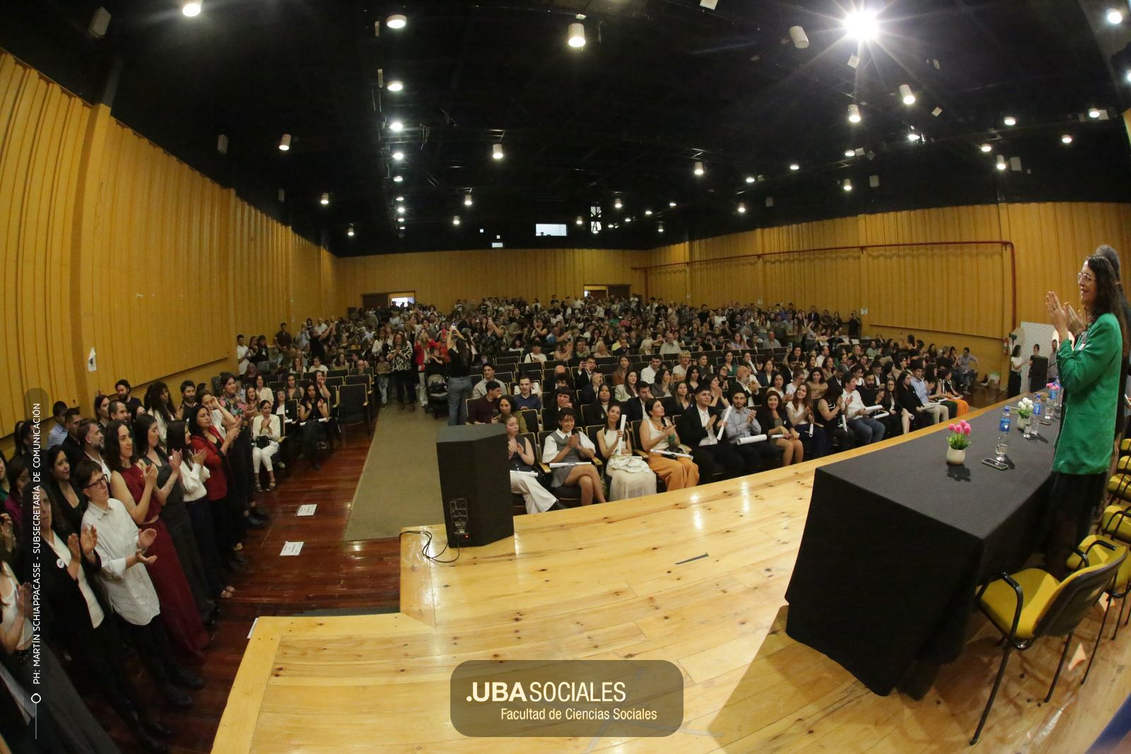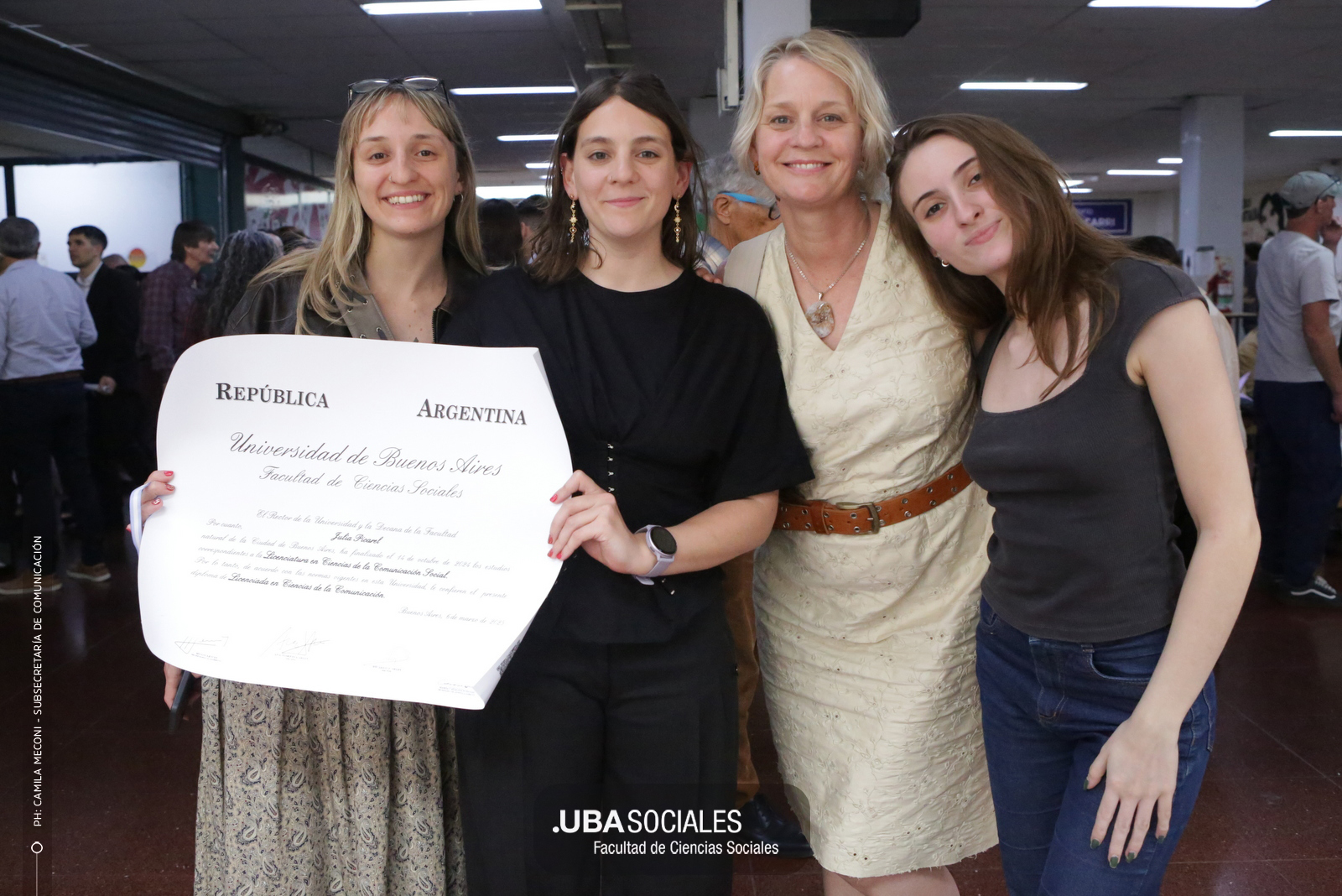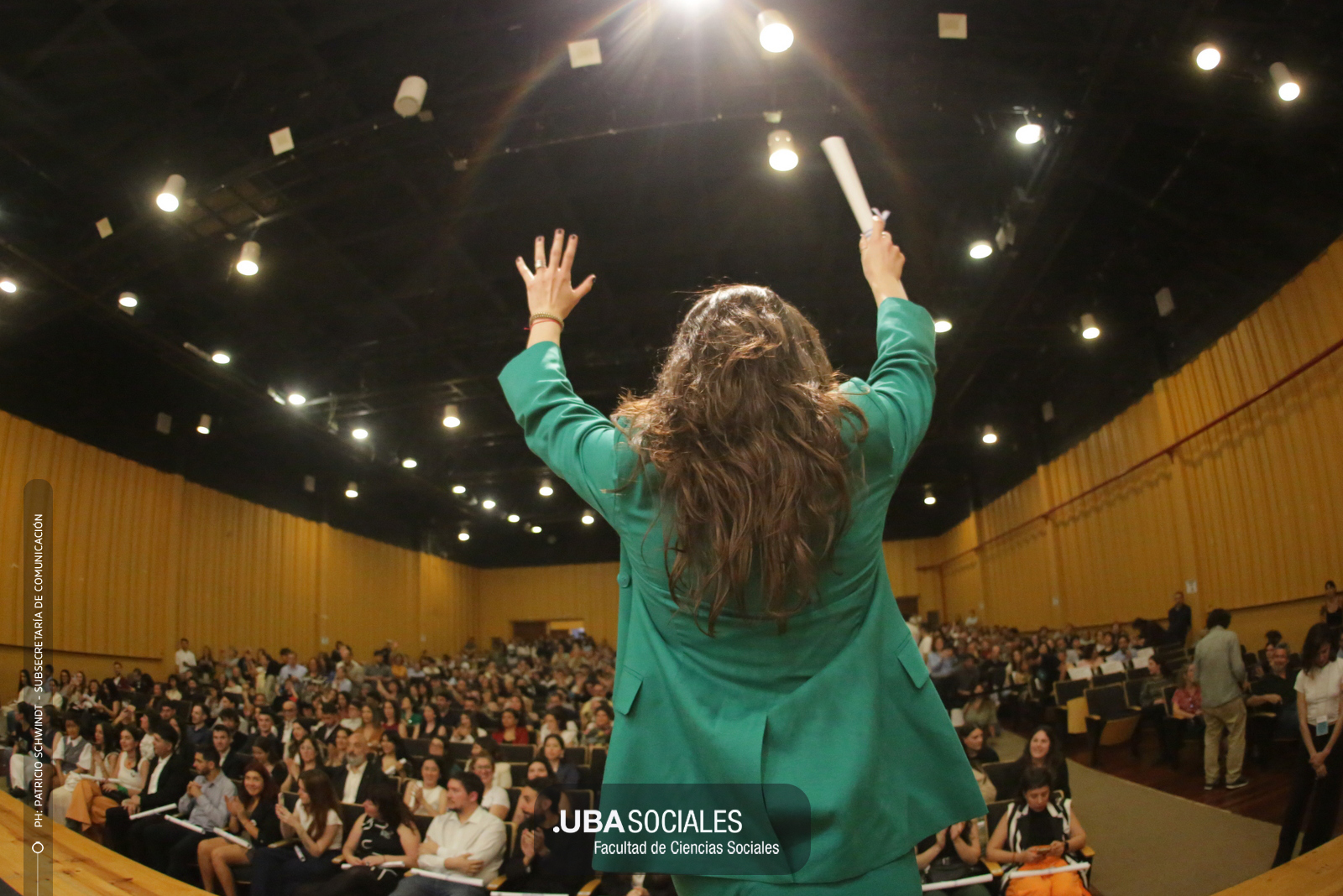 Luego, expresó: «Todo converge acá. Nos encontramos con la conciencia plena de que nadie lo hizo solo». «La universidad pública nos cambió la vida, nos llena de orgullo decir que somos licenciados y licenciadas de Ciencias de la Comunicación de la Facultad de Ciencias Sociales de la UBA», agregó.