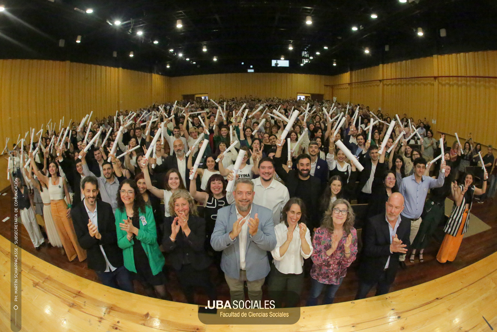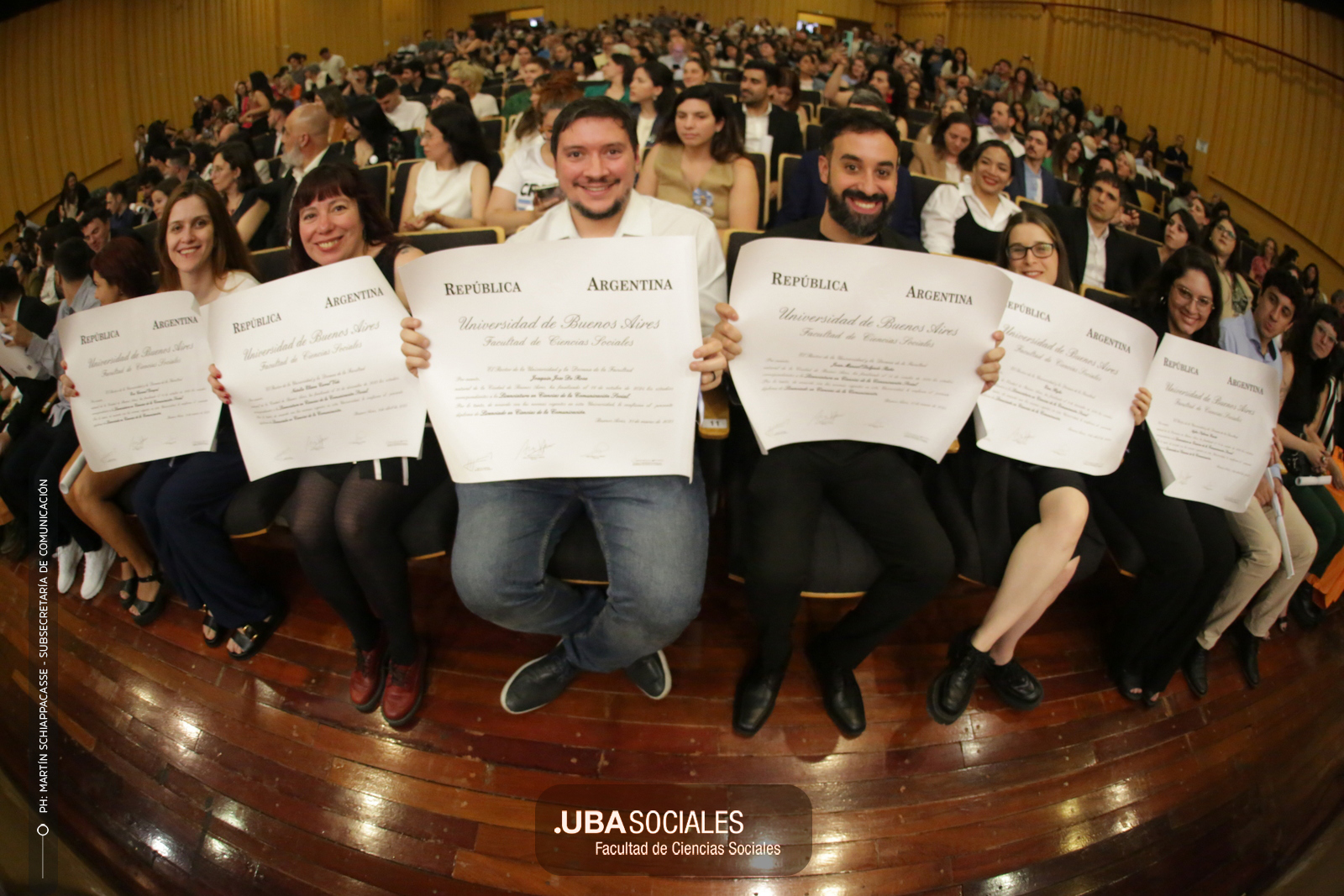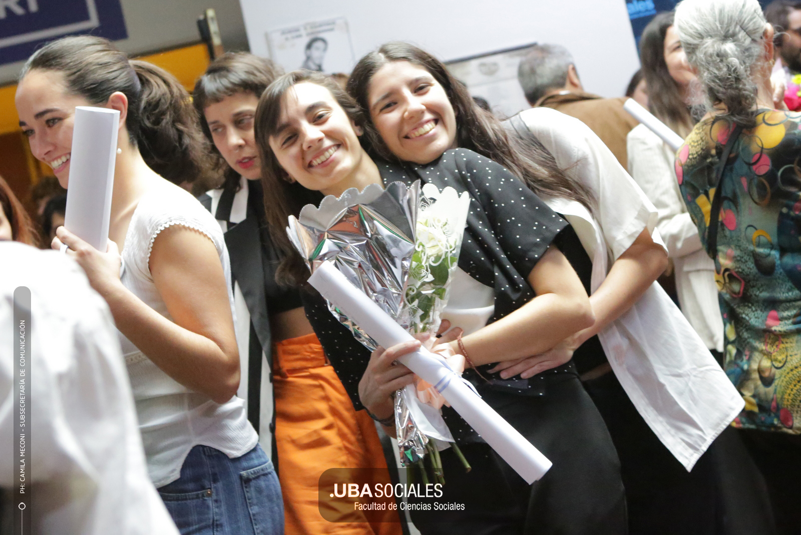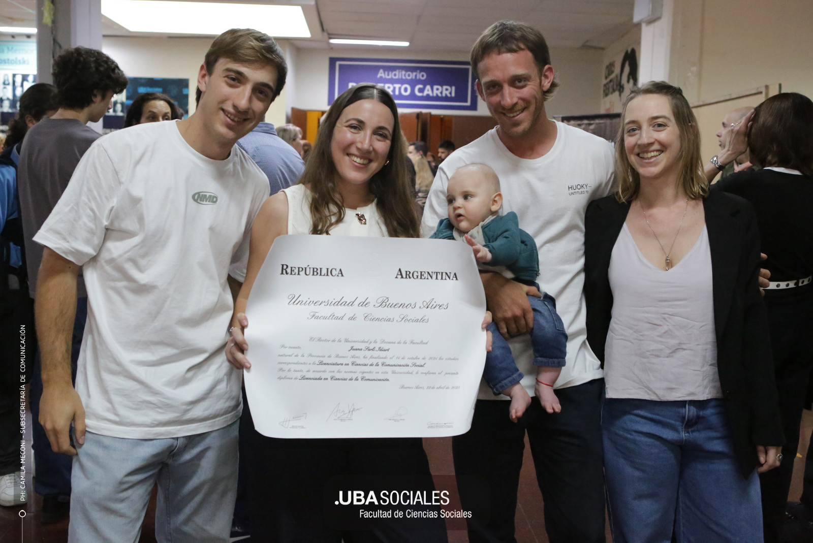 Luego, expresó: «Todo converge acá. Nos encontramos con la conciencia plena de que nadie lo hizo solo». «La universidad pública nos cambió la vida, nos llena de orgullo decir que somos licenciados y licenciadas de Ciencias de la Comunicación de la Facultad de Ciencias Sociales de la UBA», agregó.