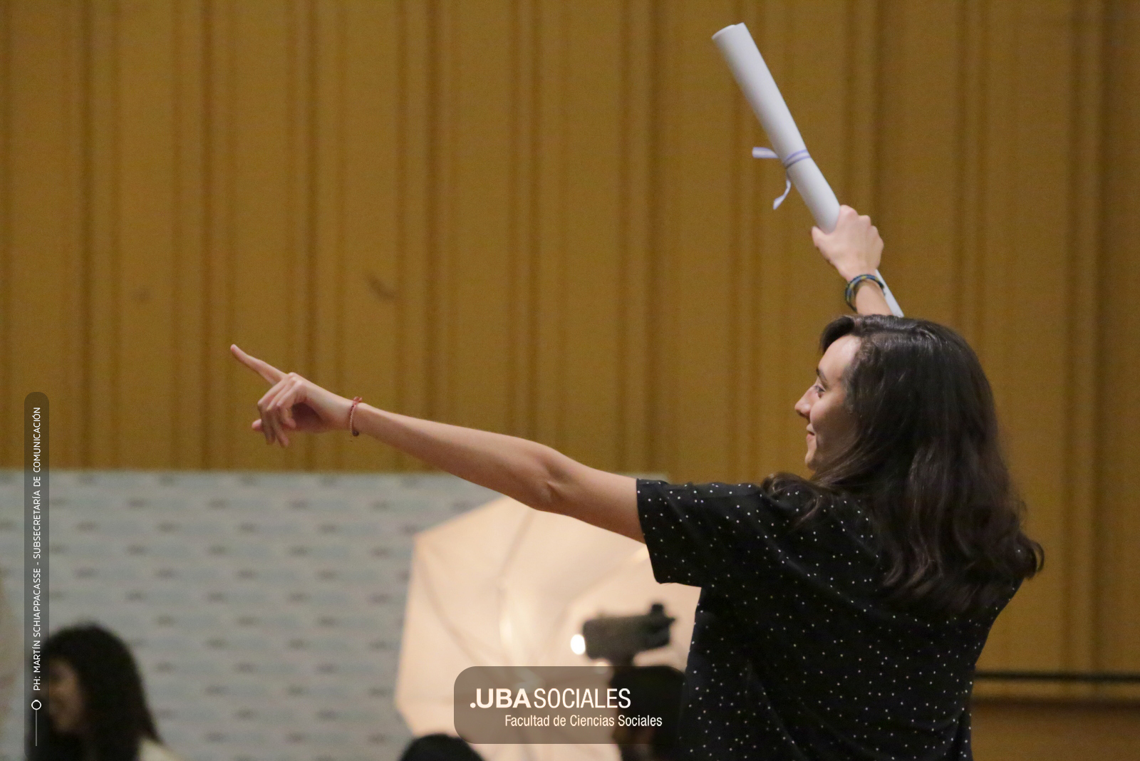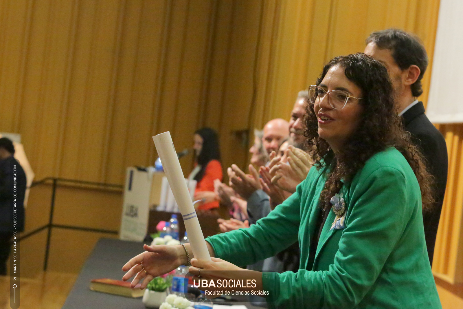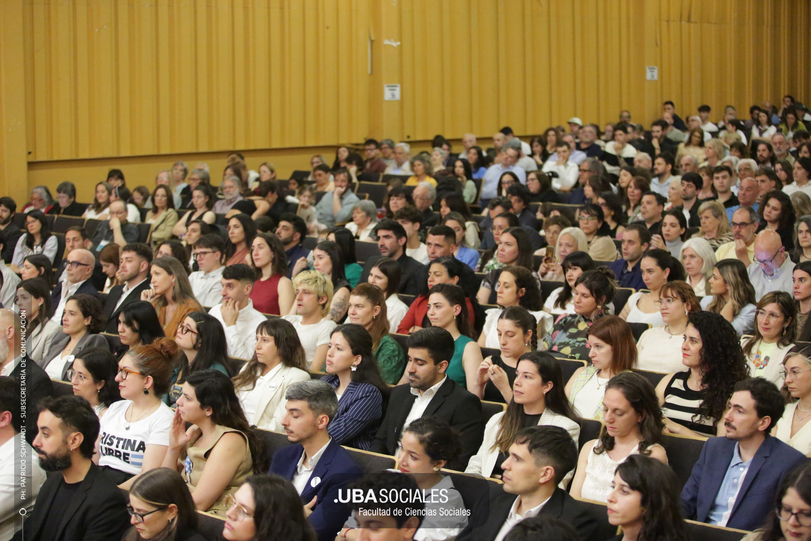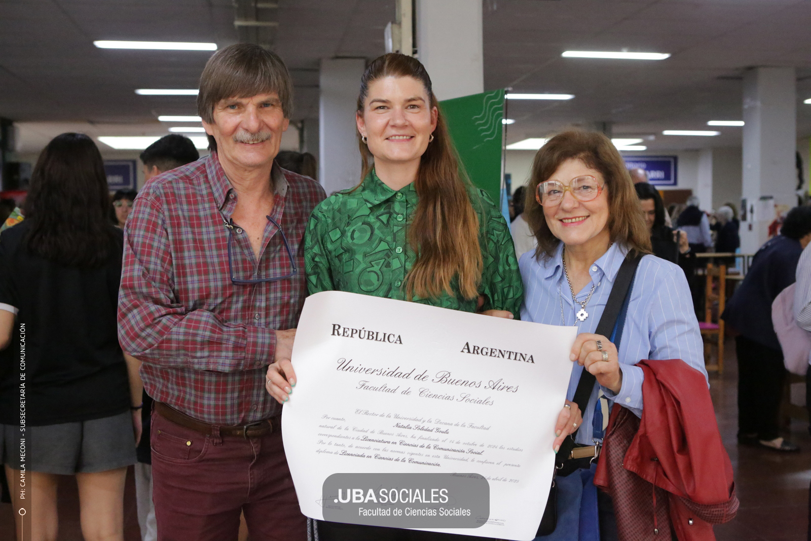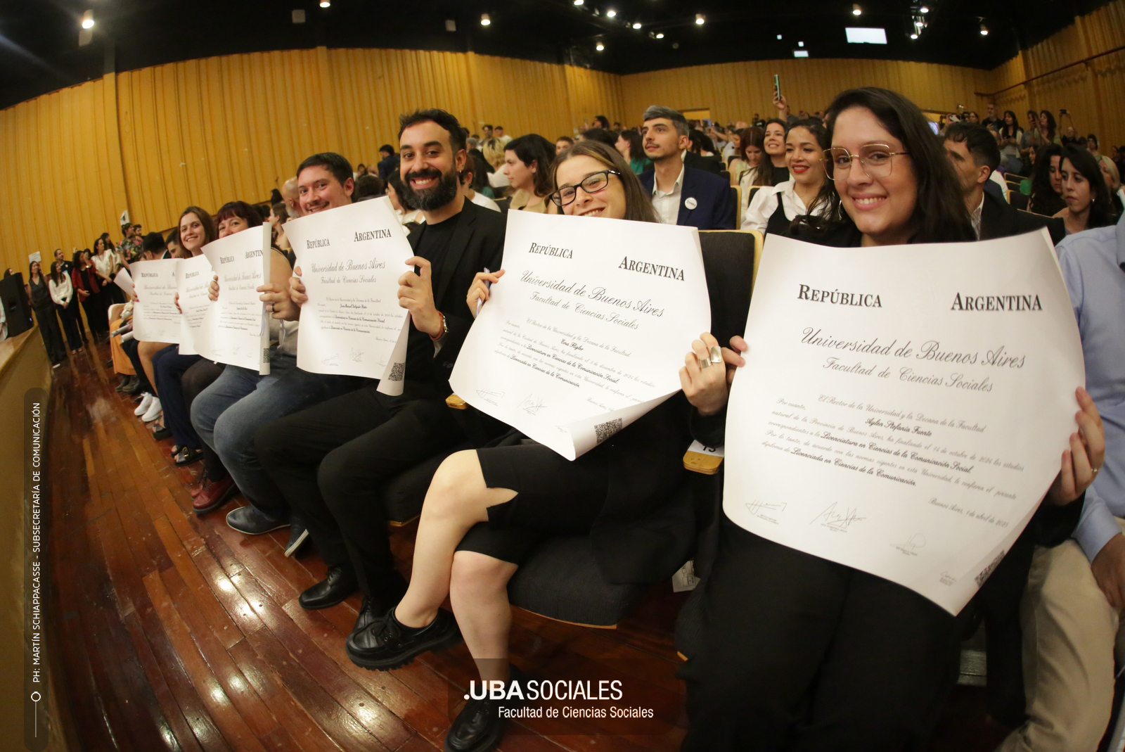 Luego, expresó: «Todo converge acá. Nos encontramos con la conciencia plena de que nadie lo hizo solo». «La universidad pública nos cambió la vida, nos llena de orgullo decir que somos licenciados y licenciadas de Ciencias de la Comunicación de la Facultad de Ciencias Sociales de la UBA», agregó.