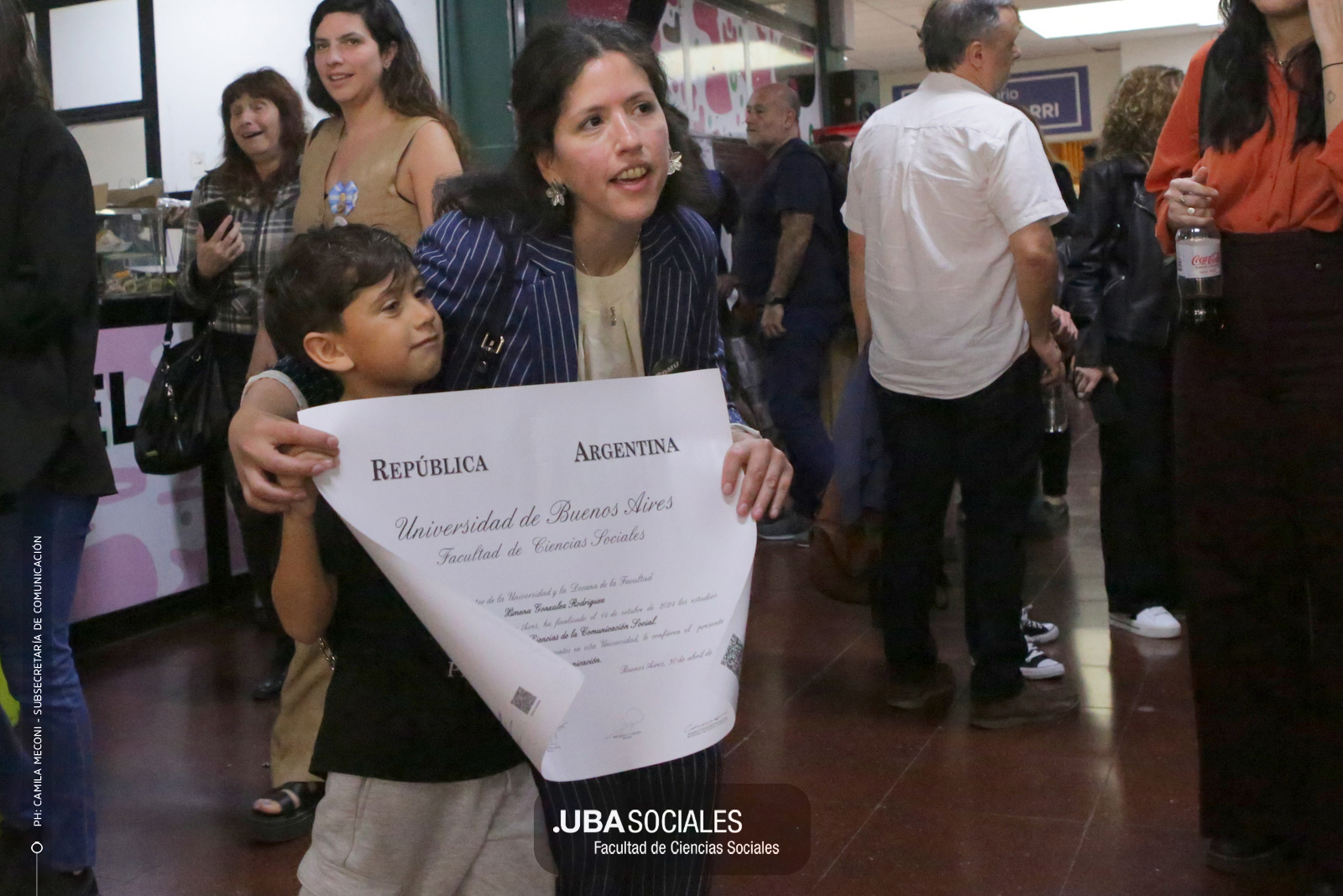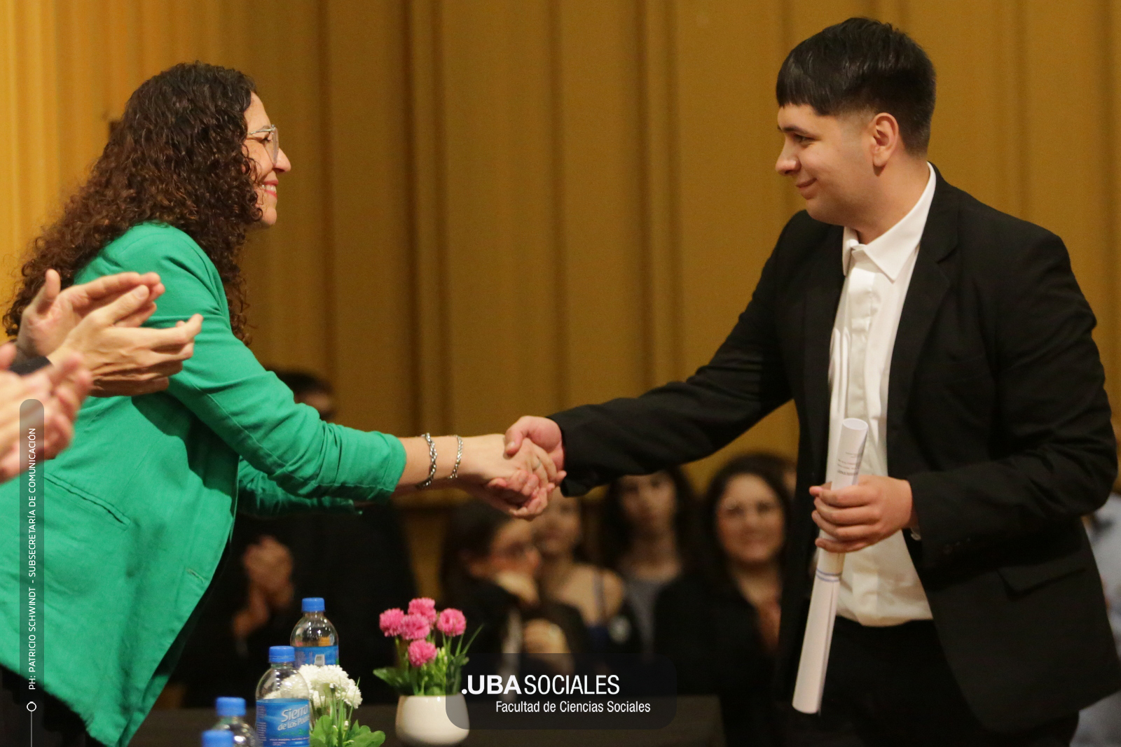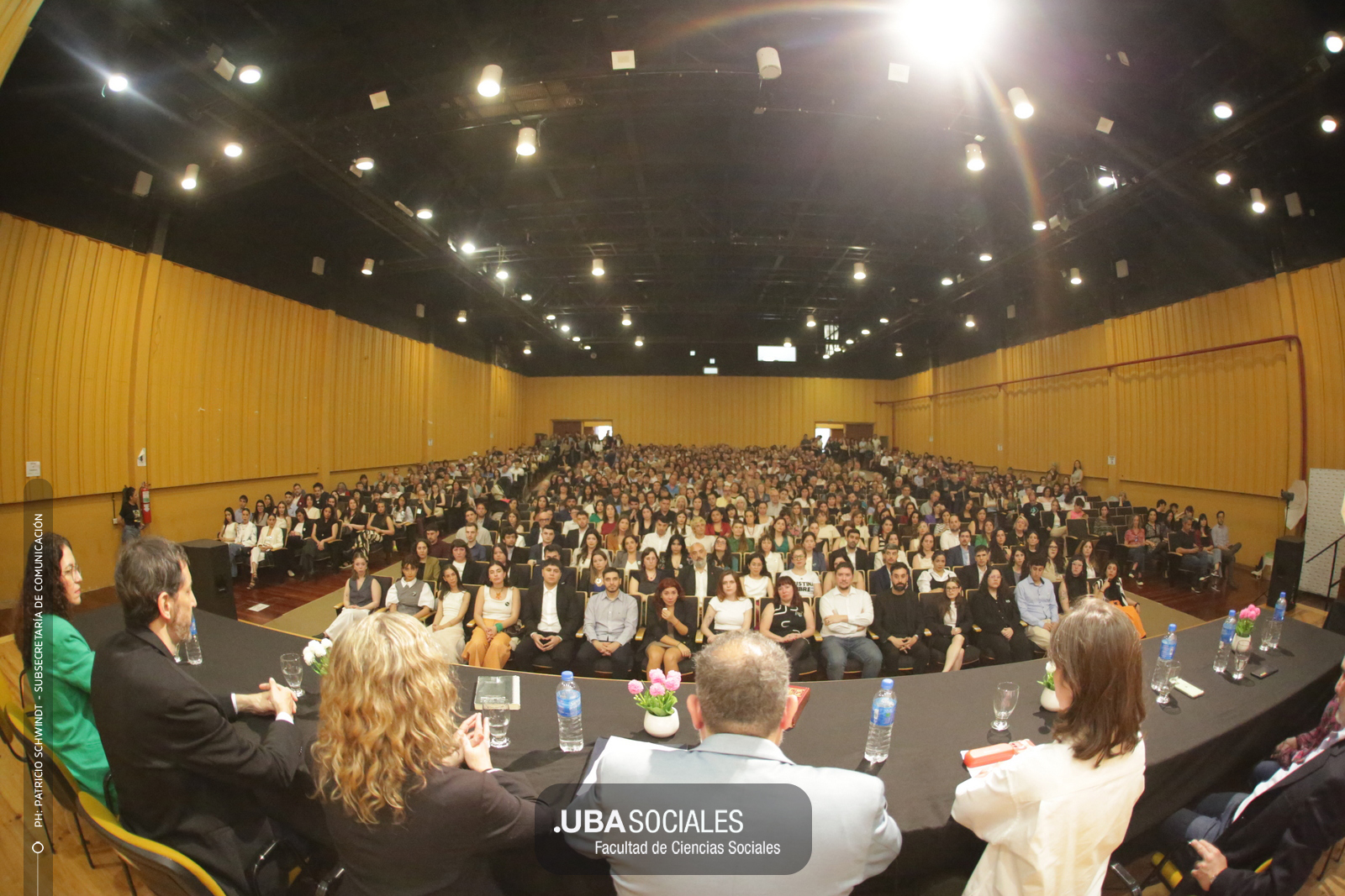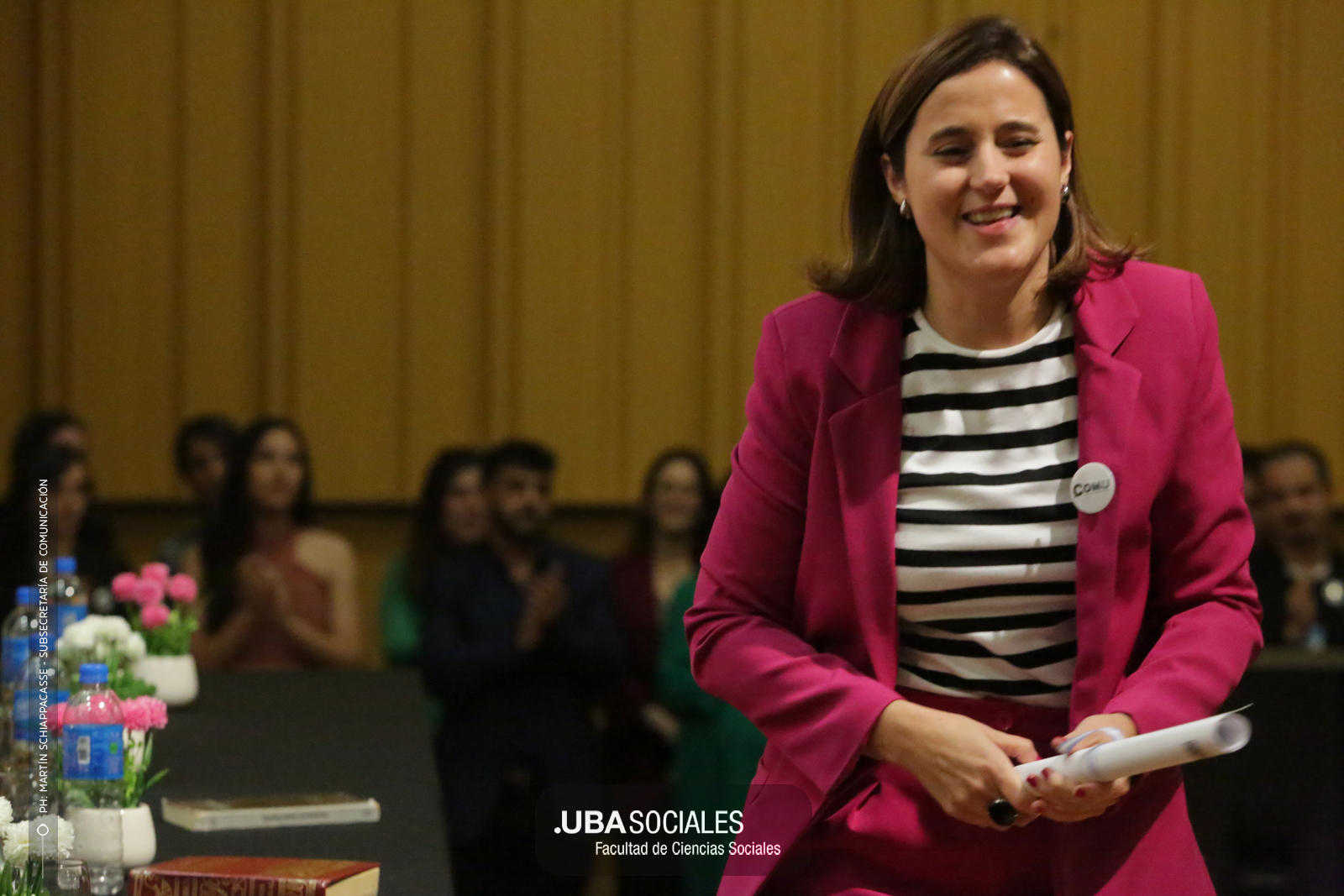 Luego, expresó: «Todo converge acá. Nos encontramos con la conciencia plena de que nadie lo hizo solo». «La universidad pública nos cambió la vida, nos llena de orgullo decir que somos licenciados y licenciadas de Ciencias de la Comunicación de la Facultad de Ciencias Sociales de la UBA», agregó.